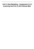 Unit 5: Data Modelling - Assignment 2 & 3 (Learning Aim B & C) (All Criterias Met