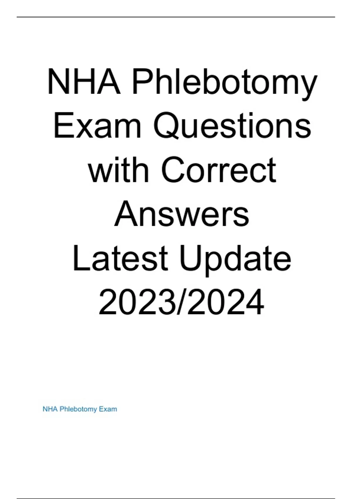 NHA Phlebotomy Exam Questions with Correct Answers Latest Update 2023/2024