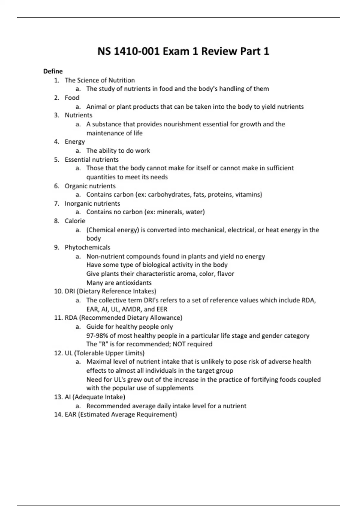 A full package of exam reviews for Nutritional Sciences 1410.