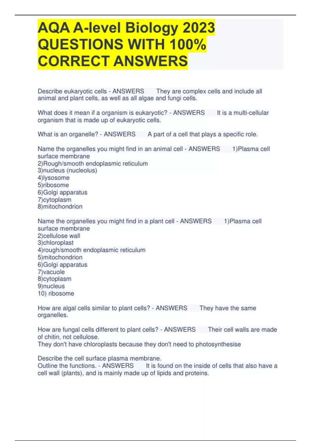 AQA A level Biology Revision EXAM QUESTIONS WITH 100% CORRECT ANSWERS