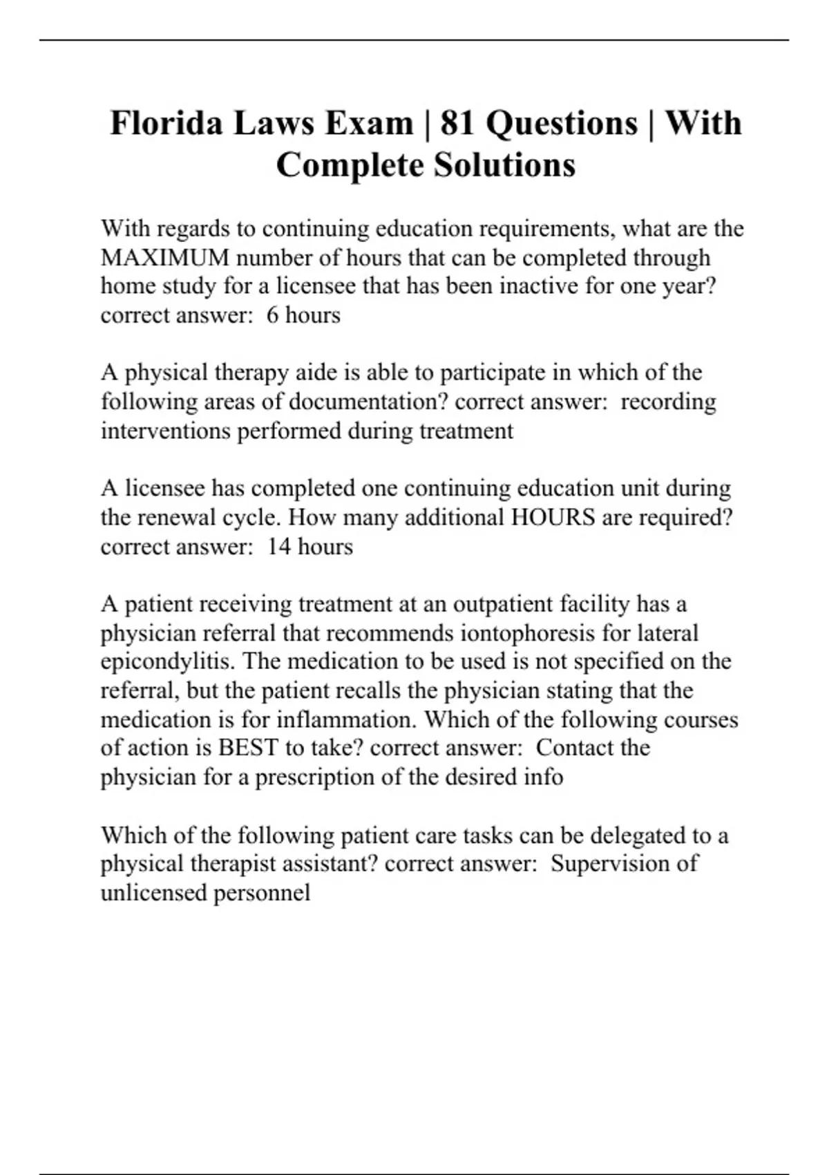 Florida Physical Therapy Laws and Rules Exam questions with complete solutions