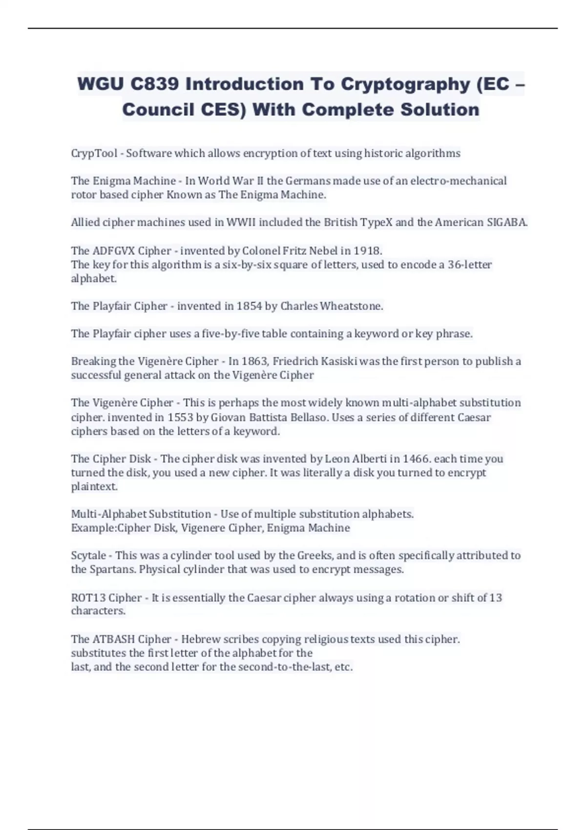 WGU C839 Introduction To Cryptography Bundled Exams With Complete Solution