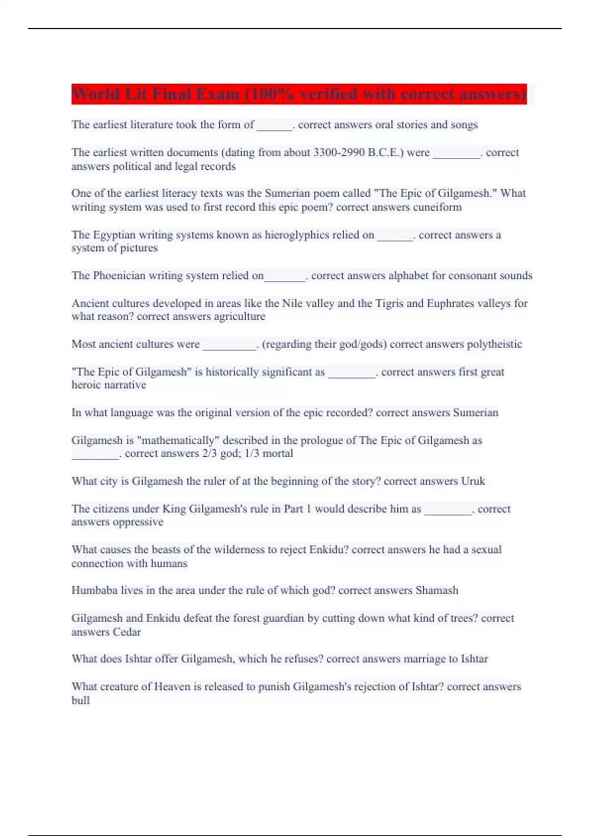 World Literature Final Exam Study Guide (A+ GUARANTEED)