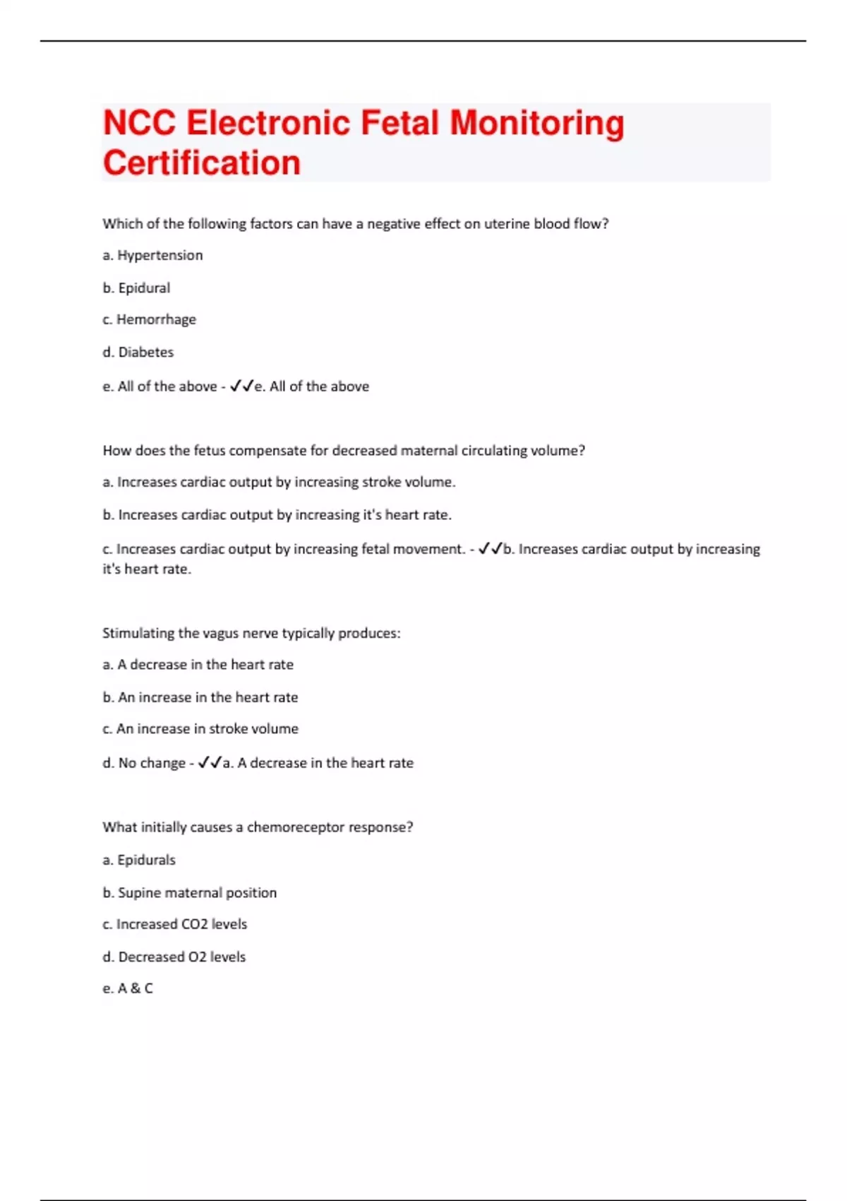 NCC Electronic Fetal Monitoring Certification| Questions With 100% Correct Answers | Verified