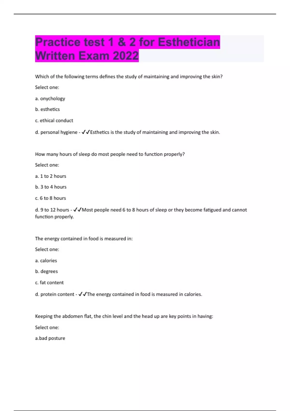 State board practice- Esthetician Test| Questions With 100% Correct Answers | Verified