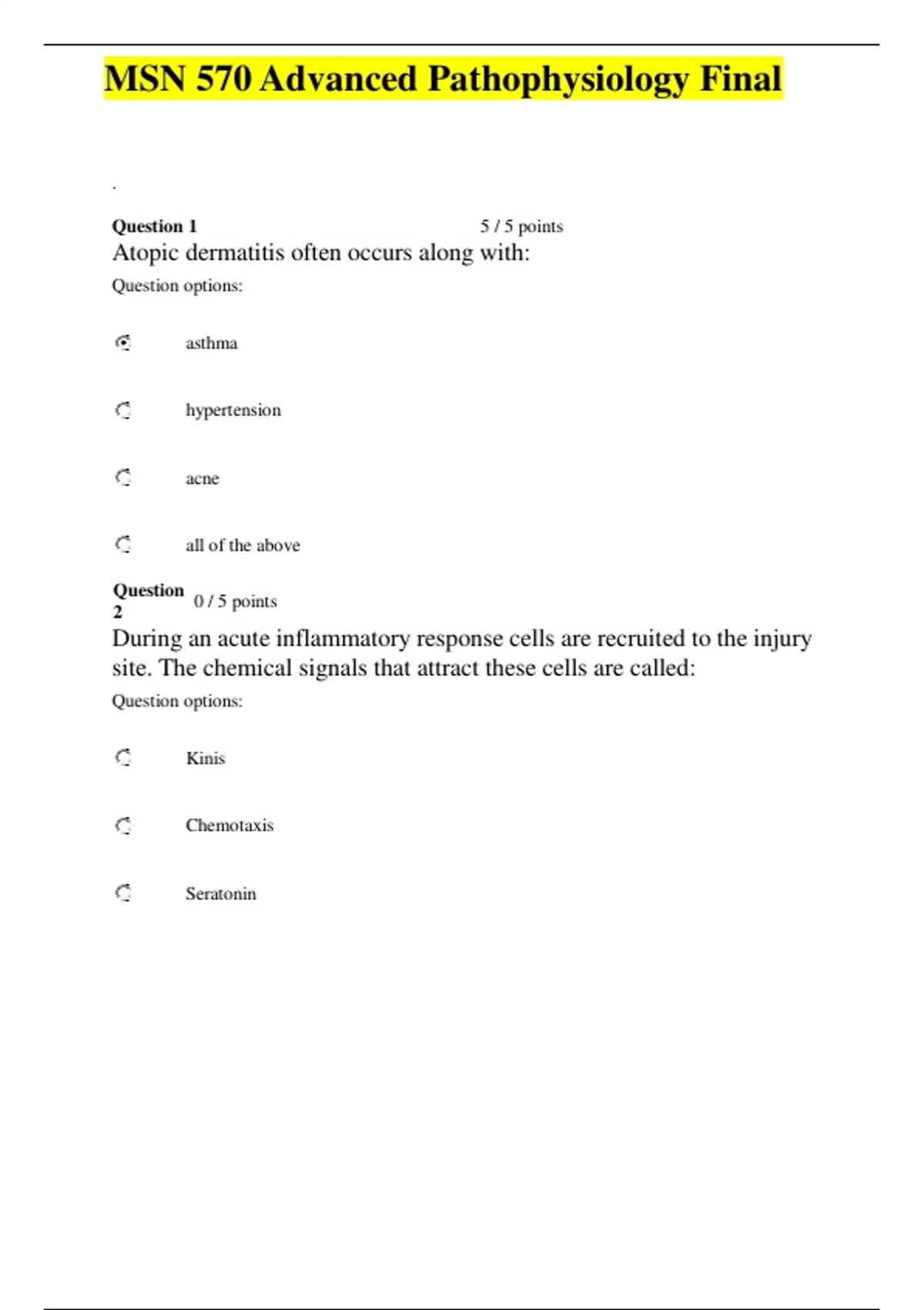 BUNDLE for Nursing MSN 570 PATHOPHYSIOLOGY MIDTERM EXAMS QUESTIONS AND ANSWERS LATEST 2023 VERIFIED 100% CORRECT