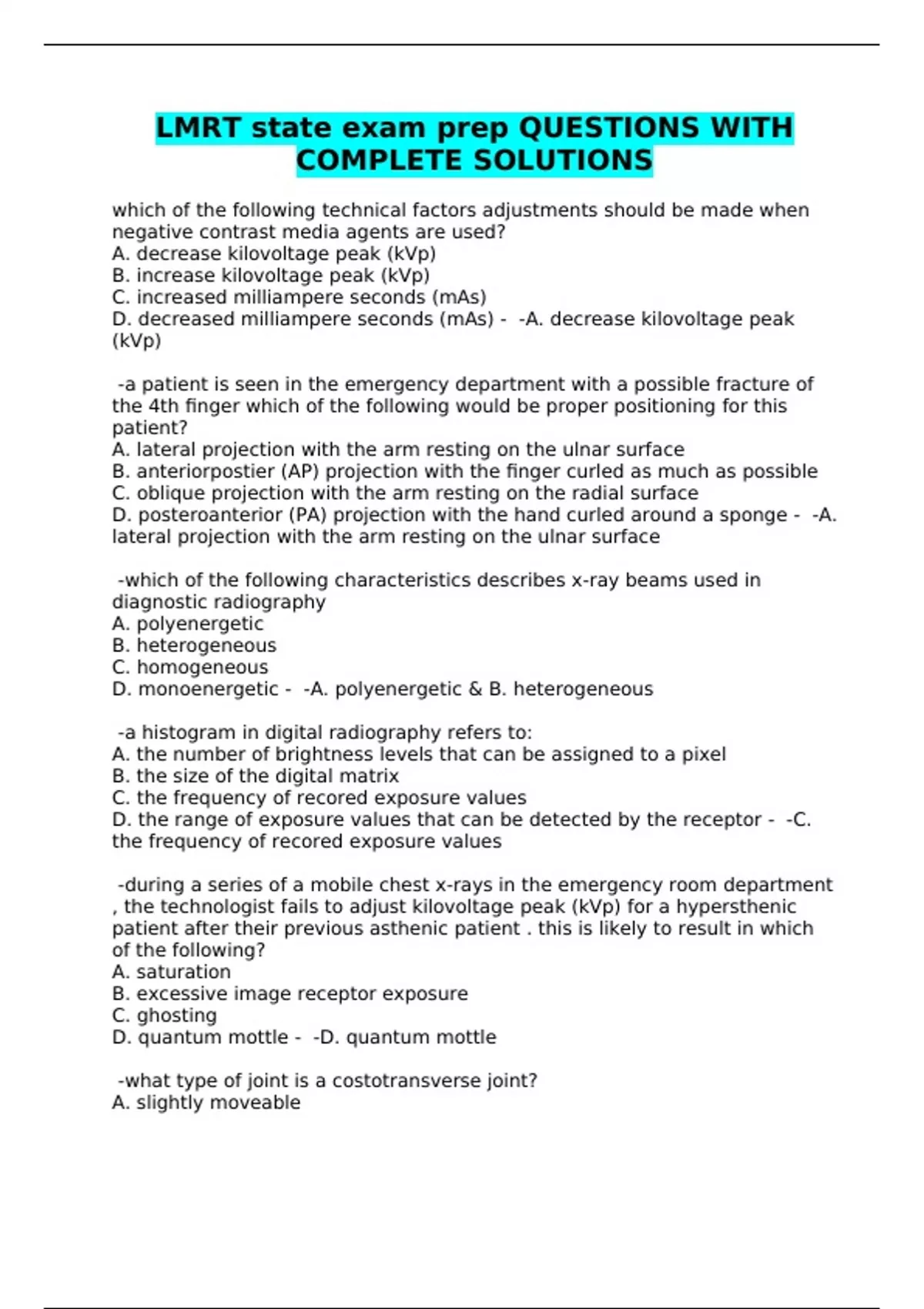 LMRT-Radiography Essentials/209 Questions With Complete Solutions