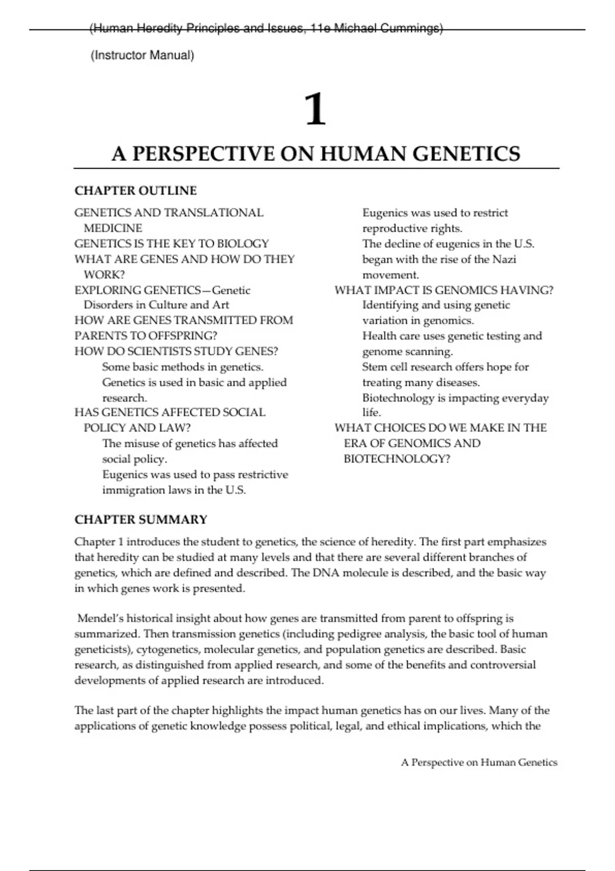 Human Heredity Principles and Issues, 11e Michael Cummings (Instructor Manual with Test Bank) Discount Price Bundle Download