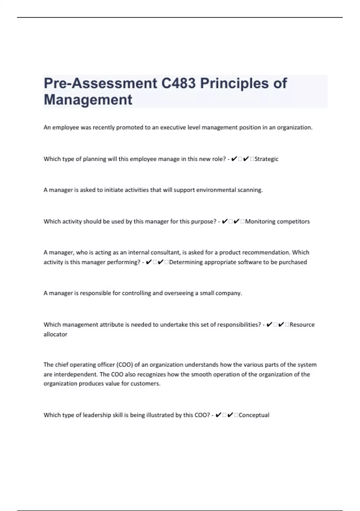 Pre-Assessment C483 Principles of Management Questions With Verified Answers