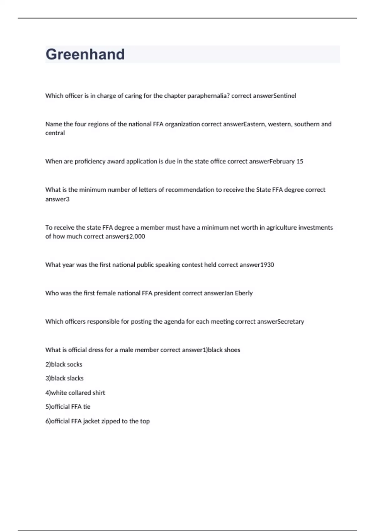 owa FFA Greenhand exam 2023 with 100% correct answers Greenhand exam 2023 with 100% correct answers