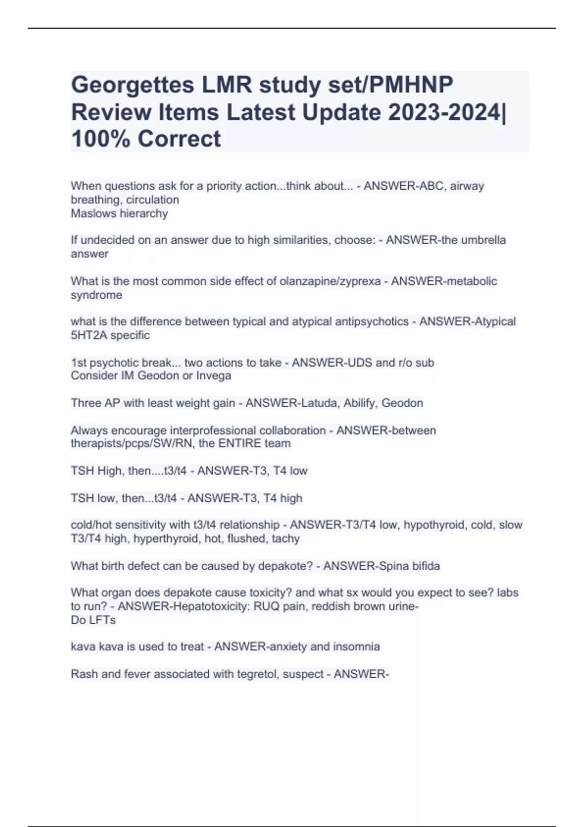 Georgette PMHNP CERTIFICATION/Georgettes LMR EXAM STUDY BUNDLE WITH COMPLETE SOLUTIONS