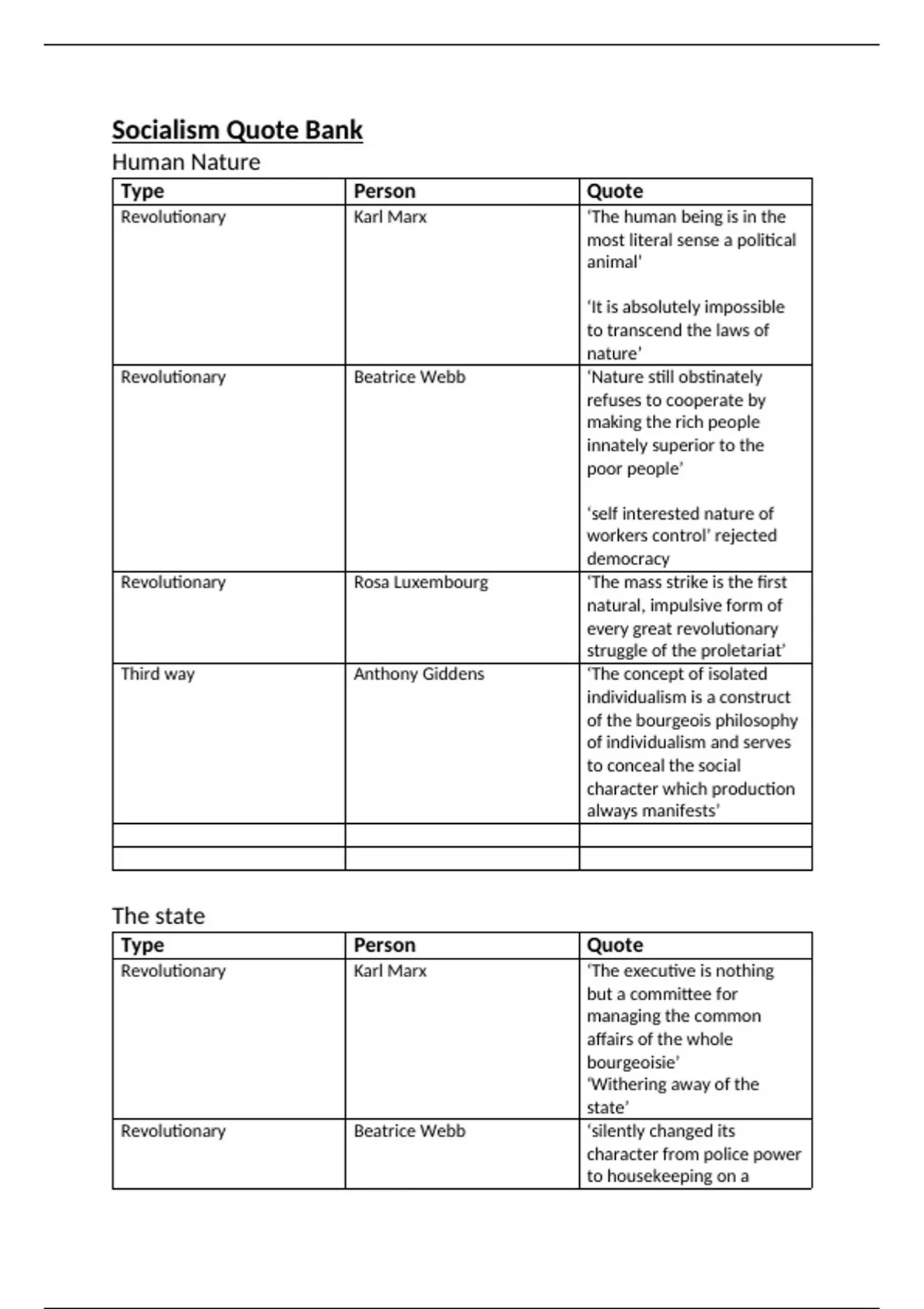 This includes quotes by key conservative, Liberal and Socialist thinkers according to the Pearson Edexcel A-level Politics specification, It is divided into different themes (Human nature, The state, the economy and society).
