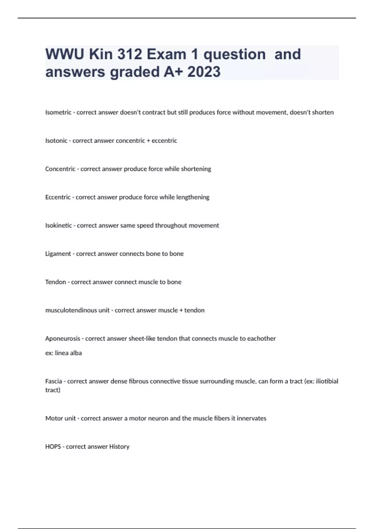 1 Exam (elaborations) Jour 190 WWU Test #1 question and answers rated A+ Passed 2023 2 Exam (elaborations) WWU BIO 101 CONNELL FINAL EXAM with complete solution 2023 verified 3 Exam (elaborations) A/HI 250 WWU KERMAN EXAM 2(graded A+)2023 already passed 4 Exam (elaborations) Bio 205 Final WWU correctly answered graded A+ 2023 passed 5 Exam (ela