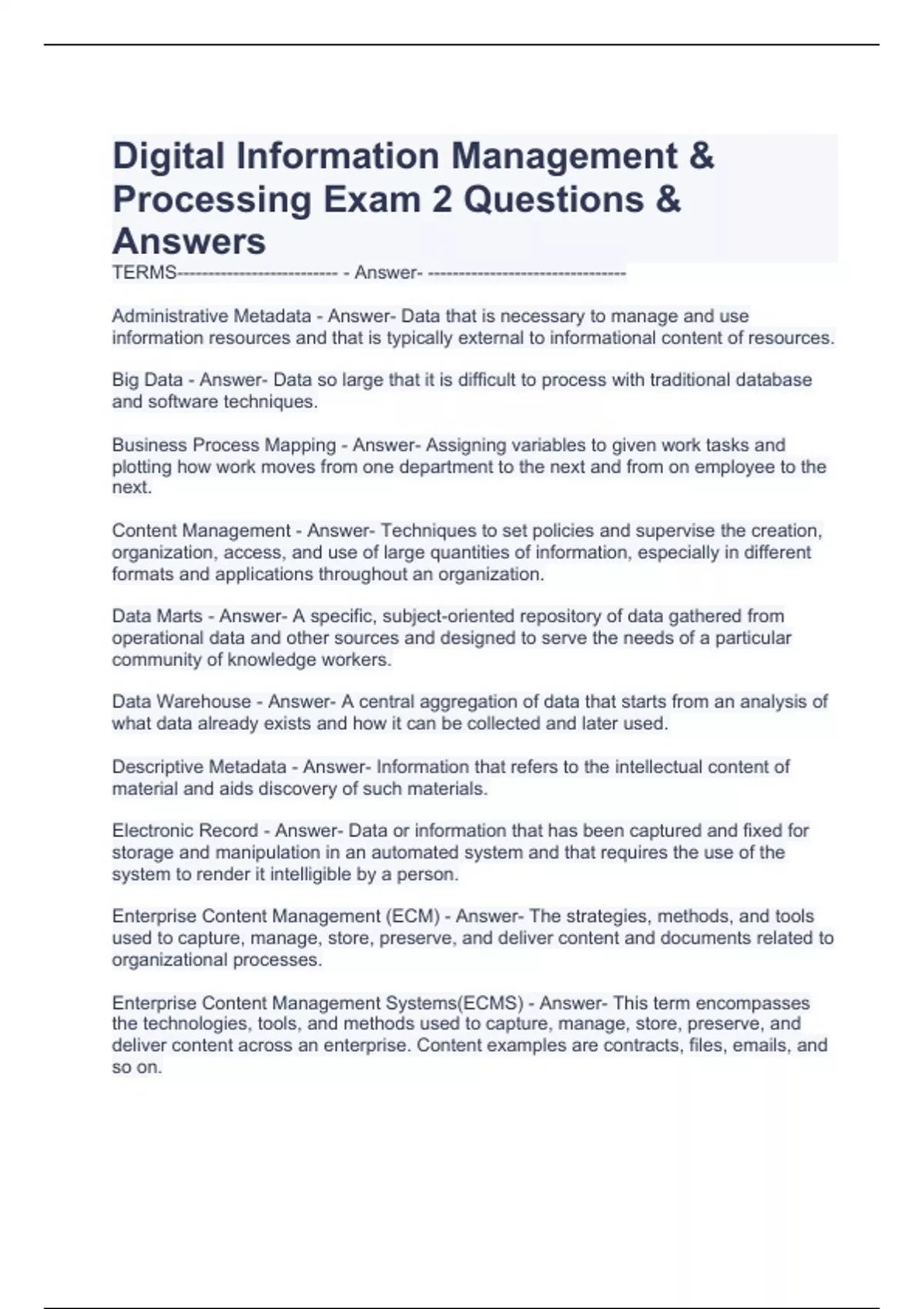 Digital Information Management & Processing Exam 2 Computer Science Unit 1: Digital Information Exam 2023 digital information technology semester 2 course review Exam Digital Information Technology Semester 1 Exam Review AP Comp Sci Test- Digital Information Digital Information Technology Test 2-solved Digital Information Technology Final Exam-Q