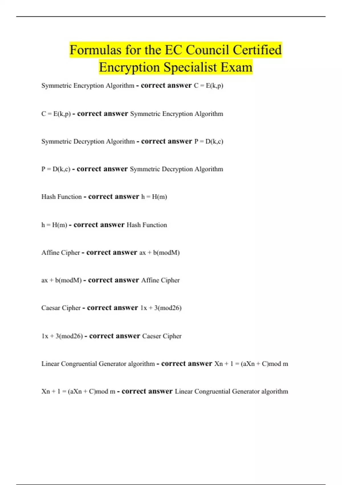 Formulas for the EC Council Certified Encryption Specialist Exam