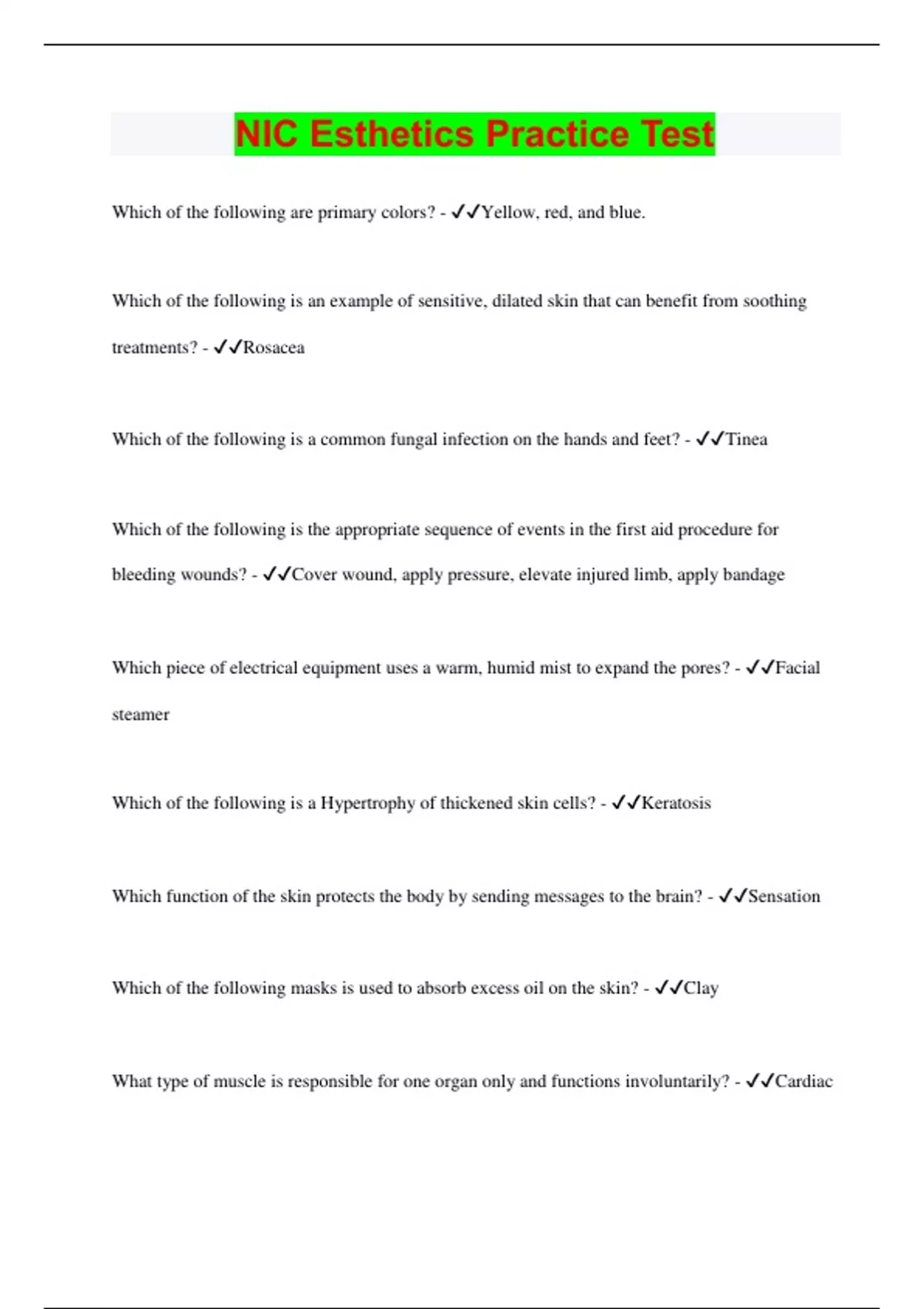 NIC Esthetics Practice Test | 100 Questions with 100% Correct Answers | Updated & Verified