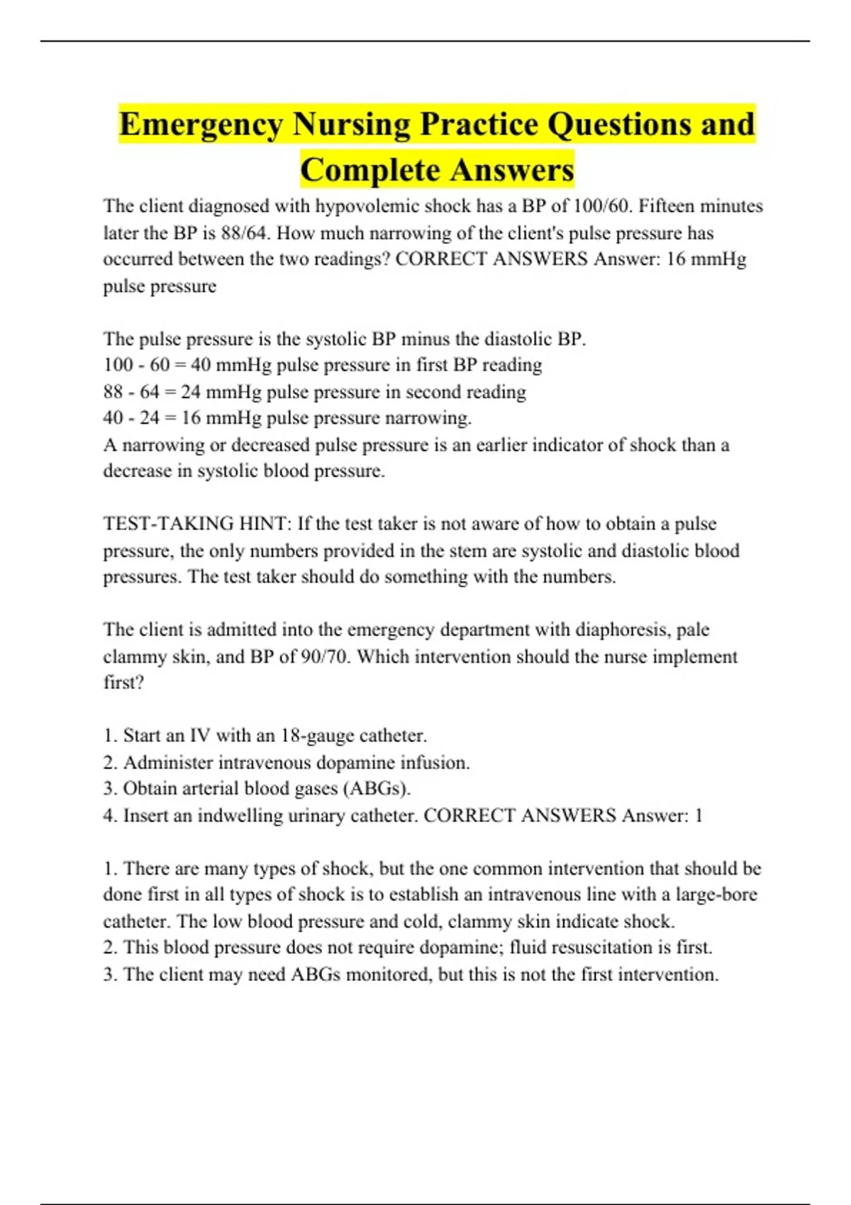 Exam 3: Emergency Nursing Exam Questions and Answers Emergency Nursing Practice Problems Questions and Complete Answers (Final Exam) Emergency Nursing Exam Answered Correctly!!