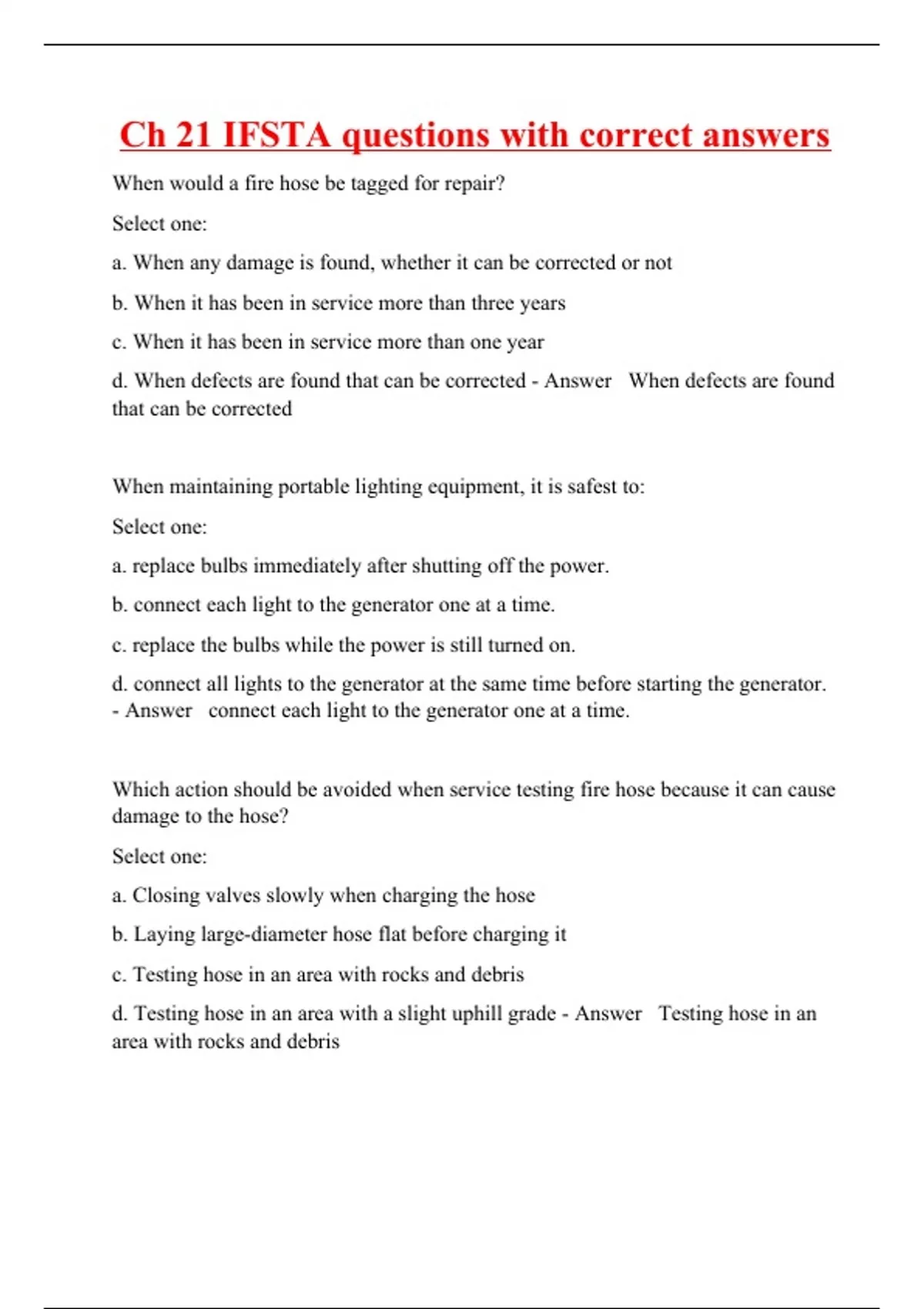 IFSTA ESSENTIALS OF FIRE FIGHTING 7th Edition Chapter 10 questions with correct answers