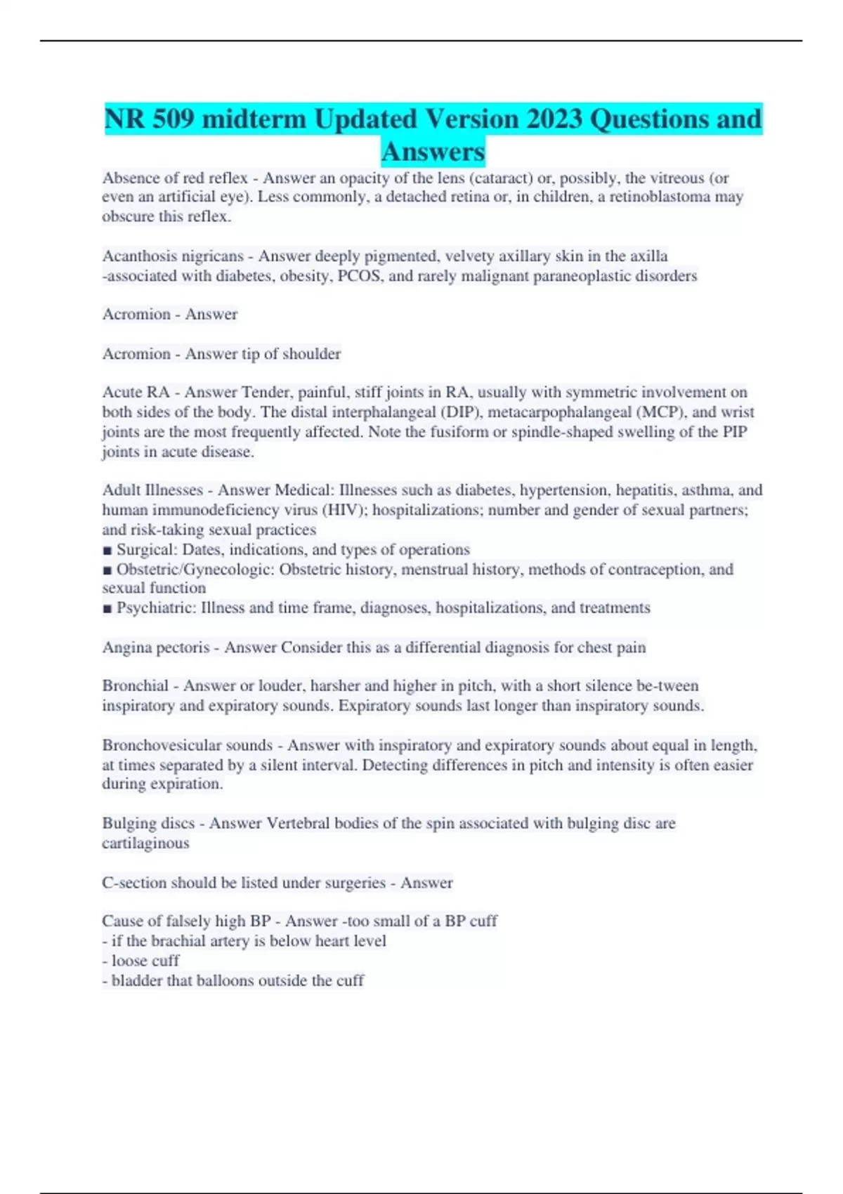 A collection of All NR 509 Exams Together with Their Study Guides week 1-7All Bundled Together, Revised Confidently