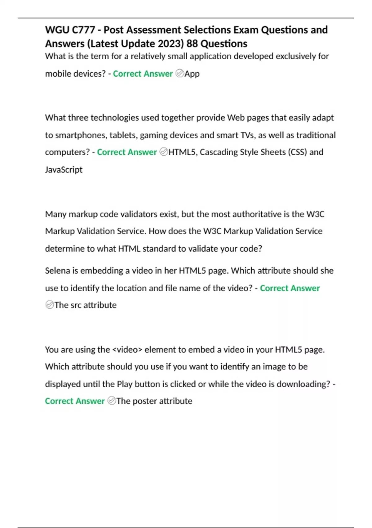 WGU C777 Quizzes (Latest Update 2023) 238 Questions with Verified Solutions WGU C777 Quizzes (Latest Update 2023) 238 Questions with Verified Solutions 2 Exam (elaborations) WGU C777 – PA Exam Questions 100% Correctly Verified (multiple choices) 70 Questions 3 SUMMARY WGU C777 - Practice Test A Questions and Answers (Latest Update 2023) 55 Questi