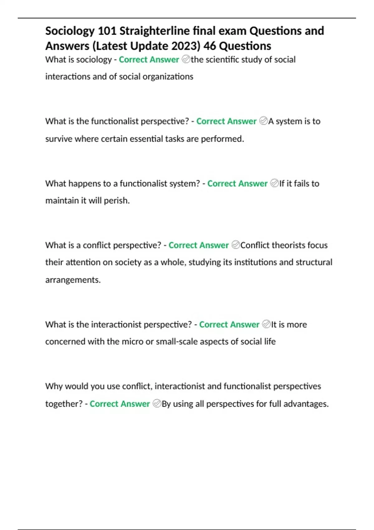 Sociology Straighterline FULL Exam Questions and Answers (Latest Update 2023) Verified Answers (361 Questions) 2 Exam (elaborations) Sociology Final Exam Questions and Answers (190 Questions) Verified Answers 2023 3 Exam (elaborations) Soc 101 Graded Exam 1 (Chapters 1,2, & 3 Quizzes and self-quizzes) Straighterline Latest Update 4 Exam (elabora