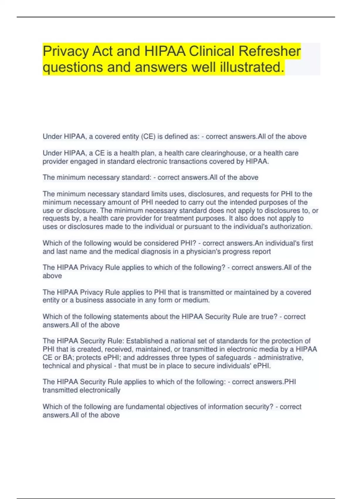 2HIPAA and Privacy Act Training (1.5 hrs) (DHA-US001) questions and answers well illustrated graded A+.016 HIPAA REFRESHER EXAM questions and answers weHIPAA and Privacy Act Training –JKO questions and answers 100% gHIPAA and Privacy Act Training (2022) questions and answers verified and updated.uaranteed success.ll illustratedHIPAA/PA Refresher TE