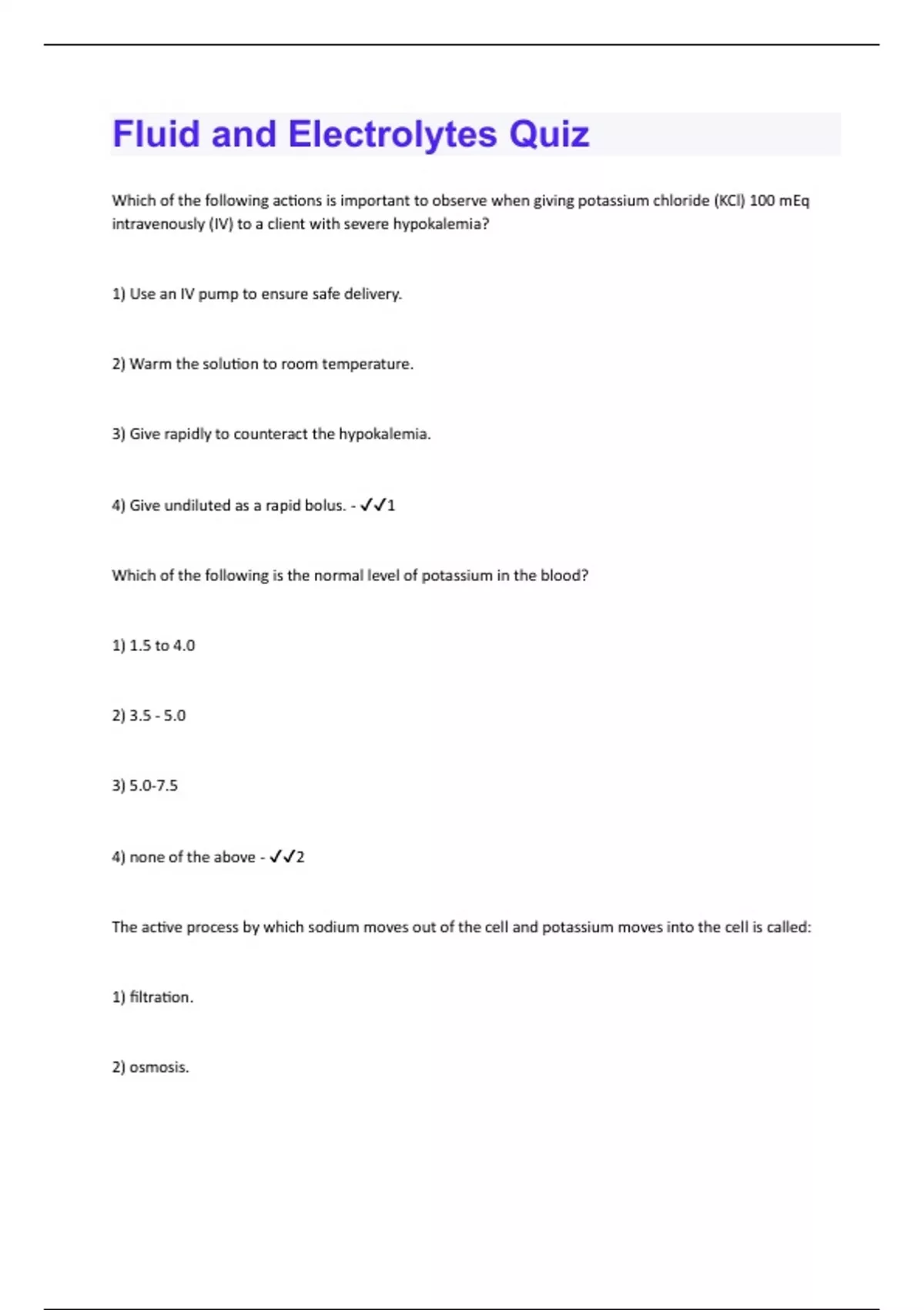 Fluid & Electrolytes | 58 Questions and Answers(A+ Solution guide)