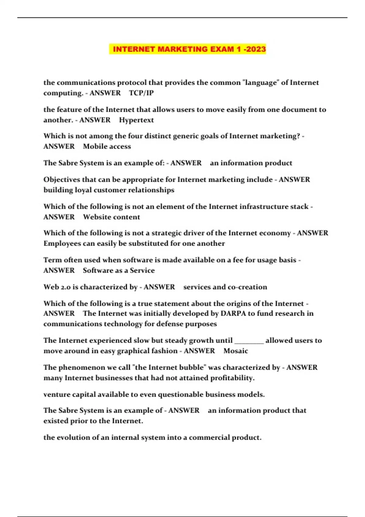 Internet Marketing Final Exam 2023