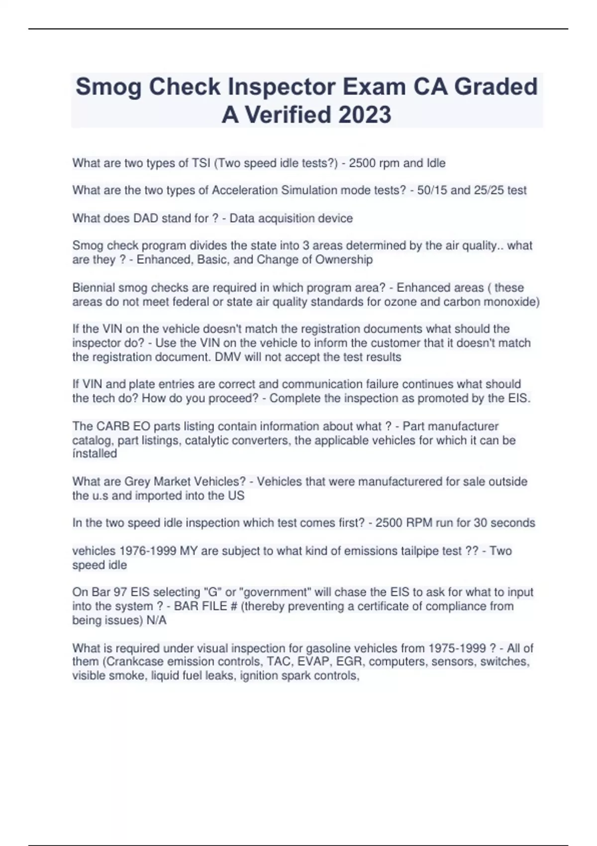 Smog Bundled Exams with complete solution(ALL IN ONE PACK) 2023 Smog Bundled Exams with complete solution(ALL IN ONE PACK) 2023 Smog Bundled Exams with complete solution(ALL IN ONE PACK) 2023