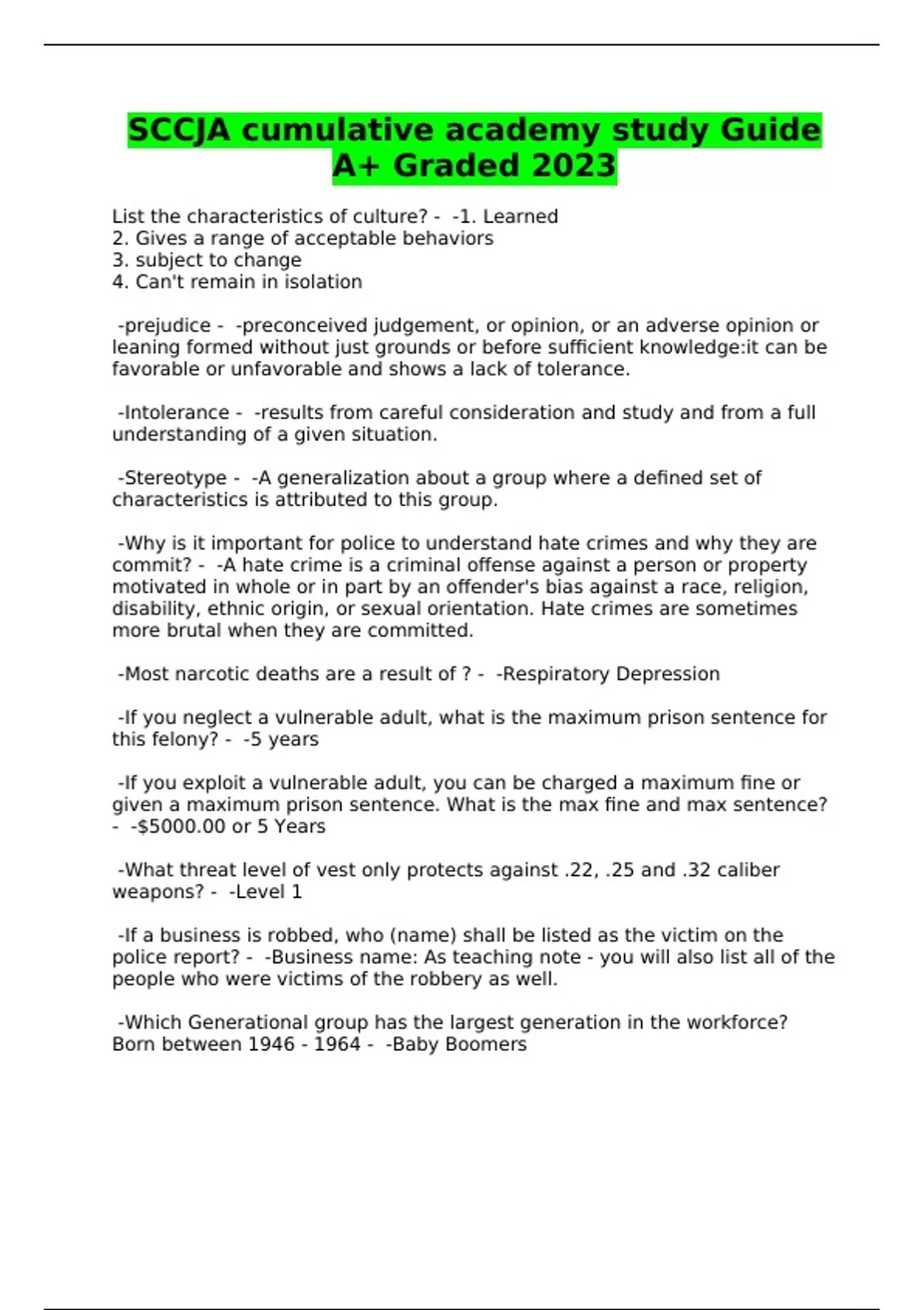 SCCJA cumulative academy study Guide A+ Graded 2023