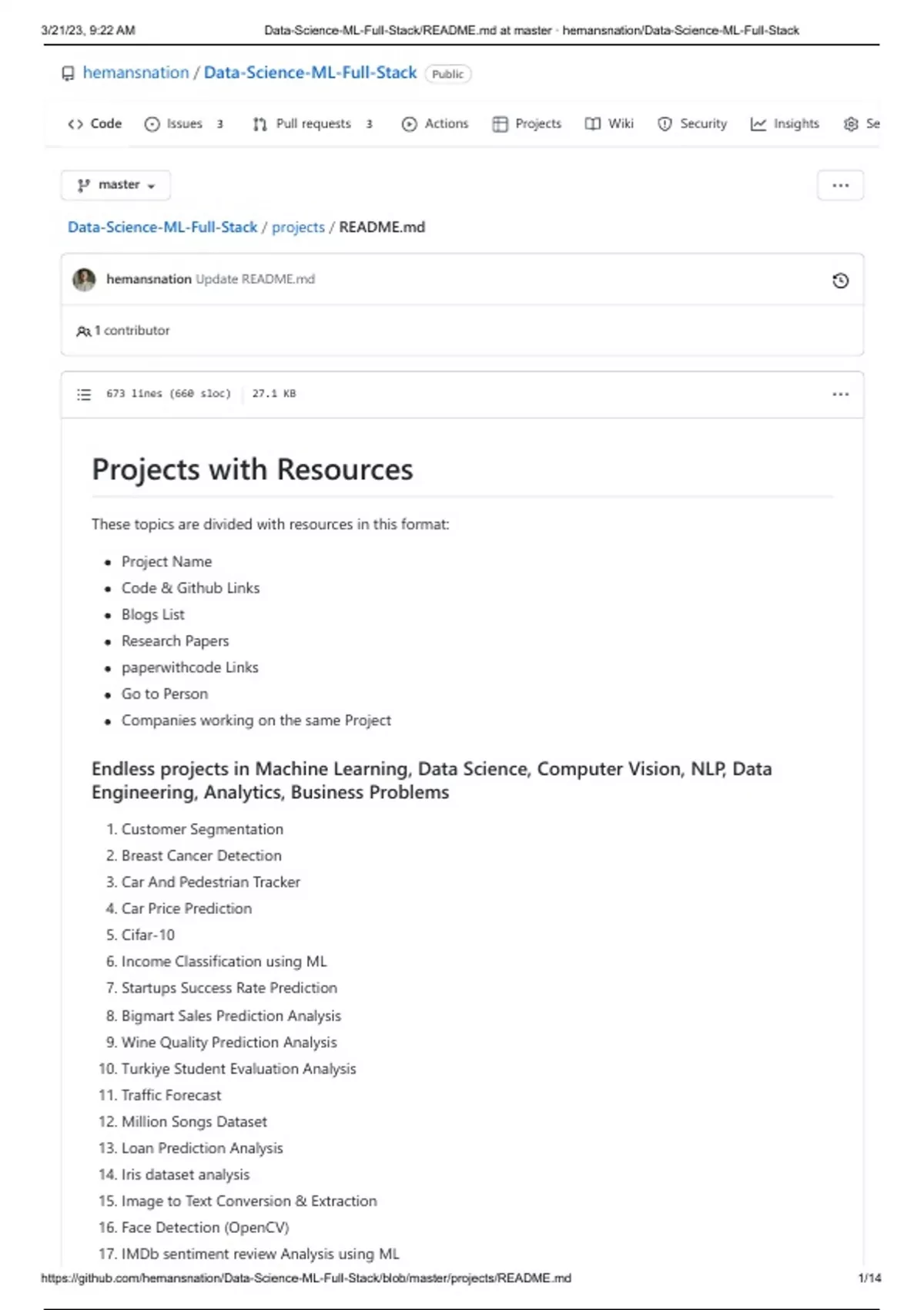 Summary Just like the name, this doc contains 700 projects for data science lovers;grouped by field NLP,CV ML etc.