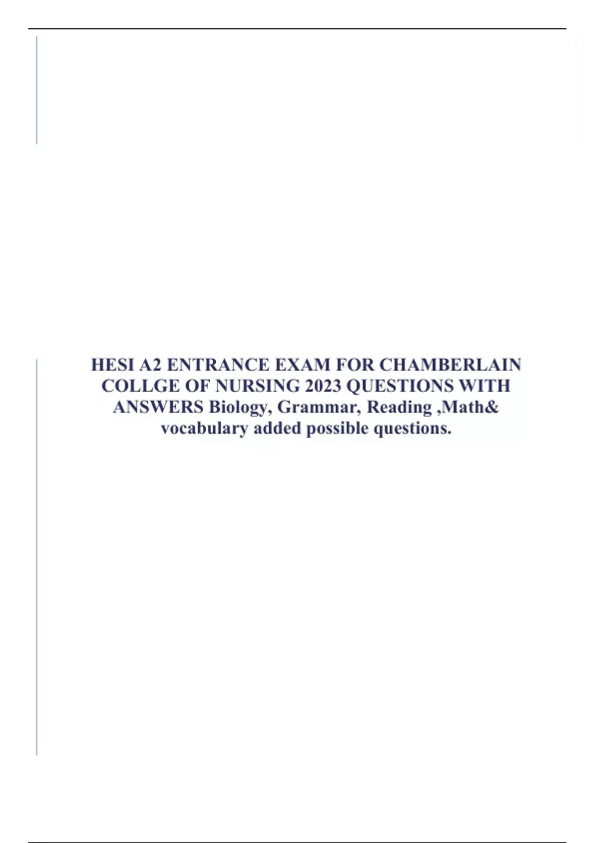Exam (elaborations) HESI A2 ENTRANCE EXAM FOR CHAMBERLAIN COLLGE OF NURSING 2023 QUESTIONS WITH ANSWERS ANATOMY AND PHYSIOLOGY 2 Exam (elaborations)  HESI A2 ENTRANCE EXAM  FOR  CHAMBERLAIN COLLEGE OF NURSING  2023 QUESTIONS WITH ANSWERS CRITICAL THINKING. 3 Exam (elaborations) HESI A2 ENTRANCE EXAM FOR CHAMBERLAIN COLLEGE OF NURSING 2023 QUE