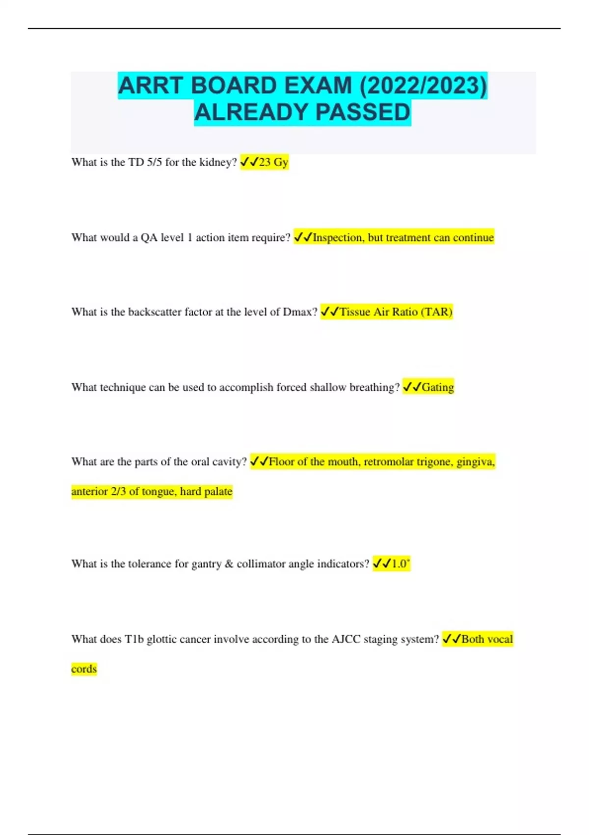 Bundle for ARRT with complete solutions | latest update 2023