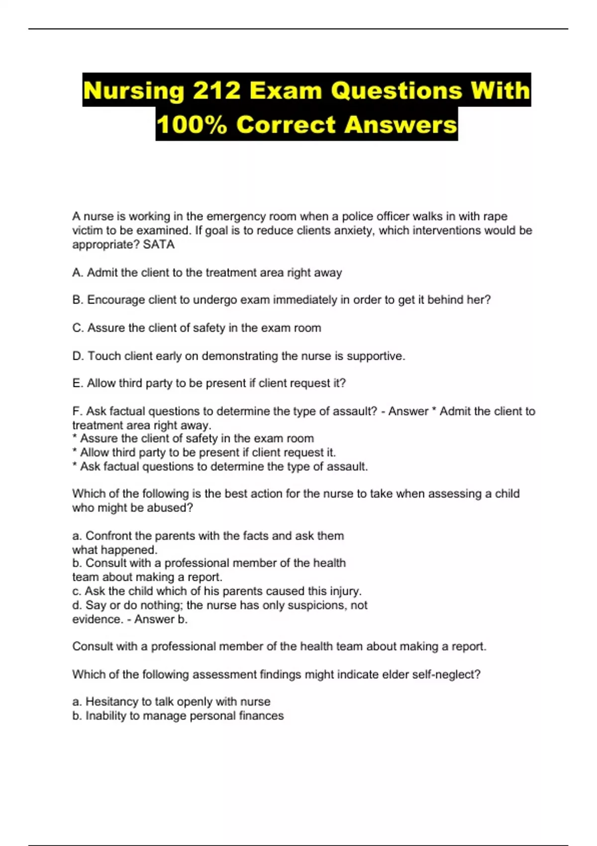 Nursing 212 Final Exam Questions With Verified Answers