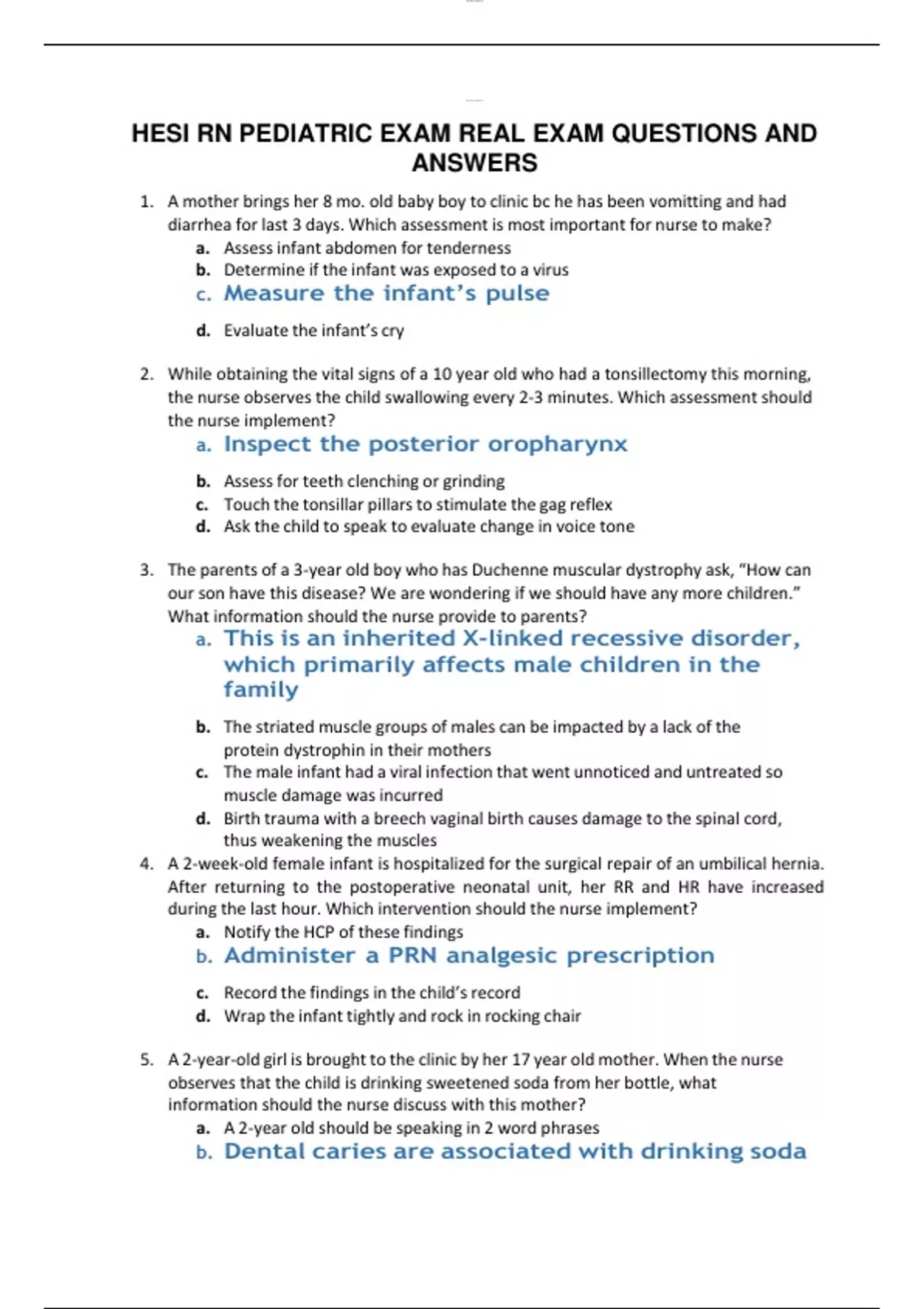 HESI RN PEDIATRIC EXAM REAL EXAM QUESTIONS AND ANSWERS