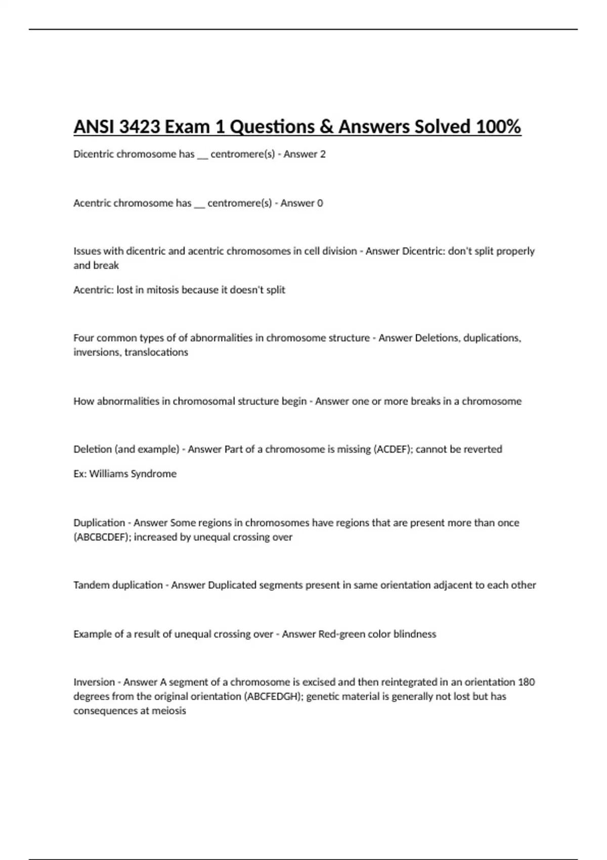 ANSI 3423 Exam 1, ANSI 3423 Final Exam, Final Exam Review, ANSI 3423 Exam , ANSI 3423 Hagen Exam 3, ANSI 3423 Exam 1, ANSI 3423 Genetics Exam 1, ANSI 3423 OSU Genetics Test 1, ANSI 3423 OKSTATE EXAM 1, ANSI 3423 Exam 1, ANSI 3423 Animal Genetics Exam #1, ANSI 3423 Exam 1 , ANSI 3423 Final Genetics Okstate Exam