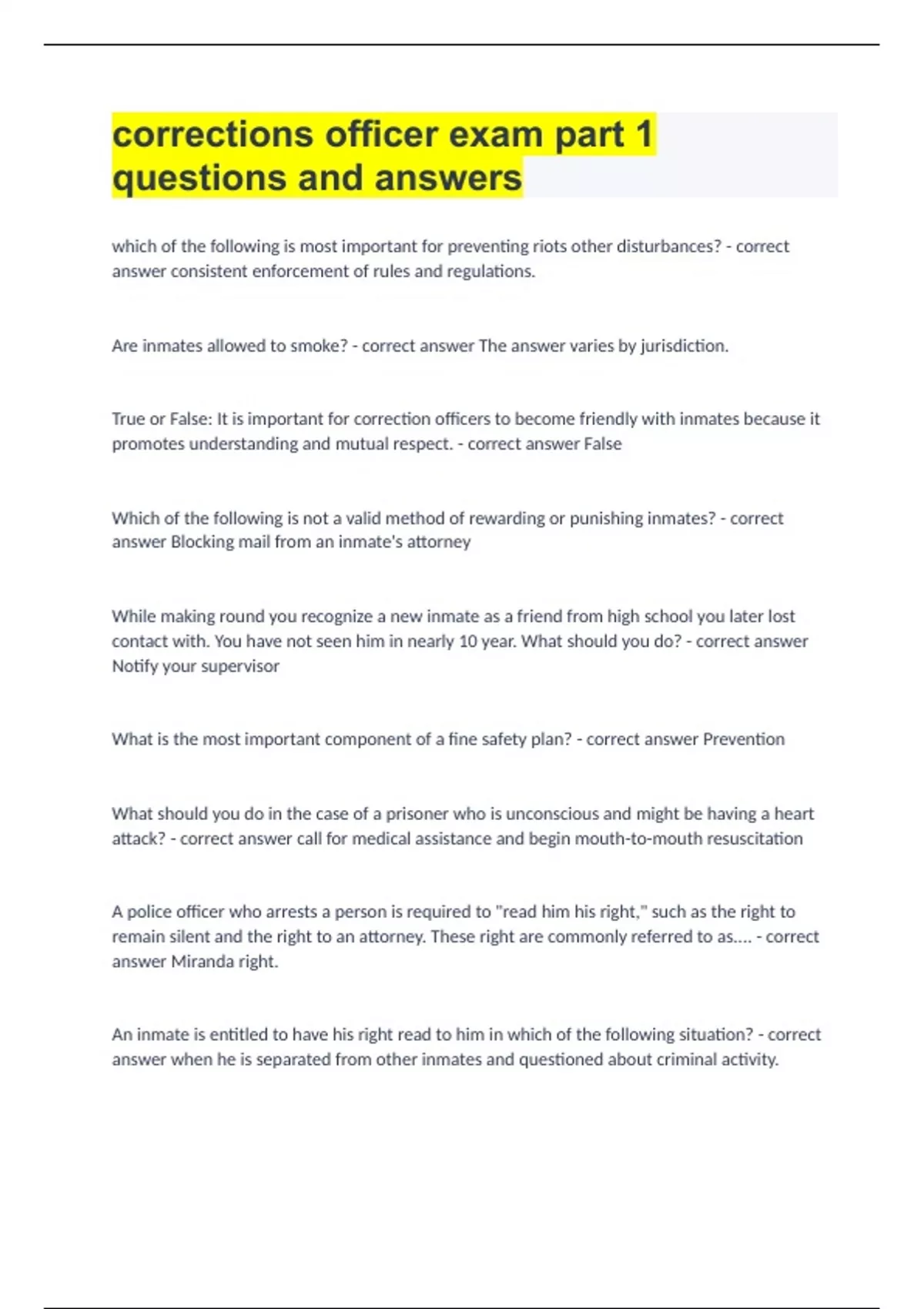 Corrections Officer Exam questions and answers.