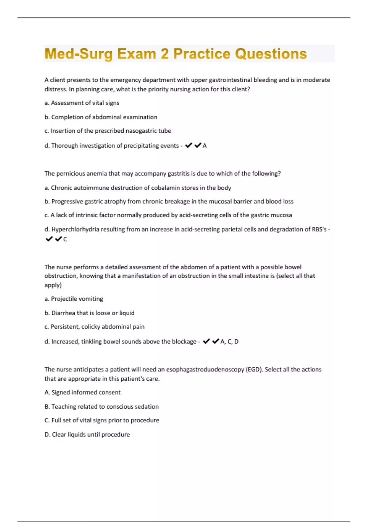 Med-Surg Exam 2 Practice Questions | 109 Questions and Answers(A+ Solution guide)
