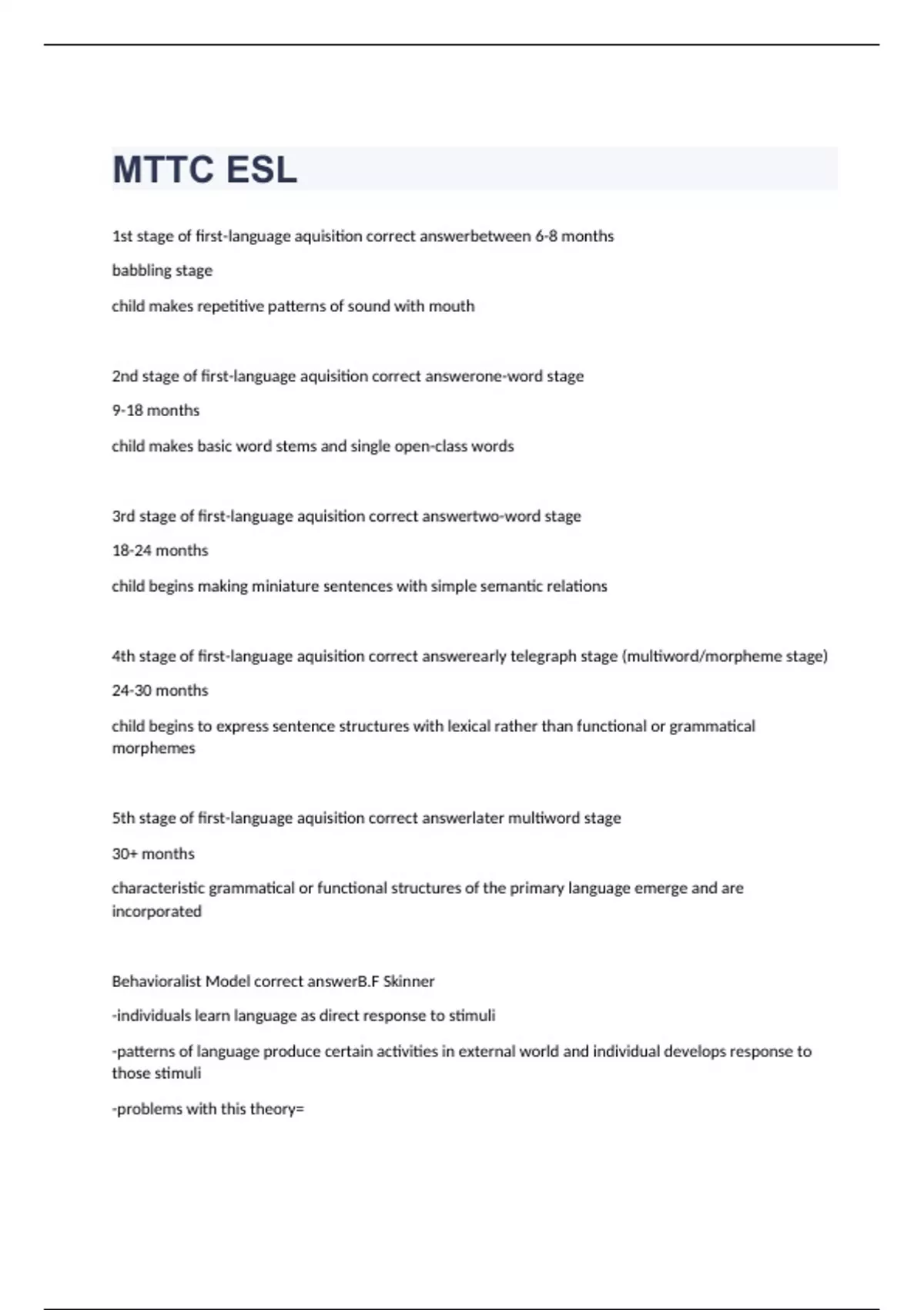 MTTC 106 Practice Test exam 2023 with 100% correct answers MTTC 103 Elementary Education Sample exam 2023 with 100% correct answers
