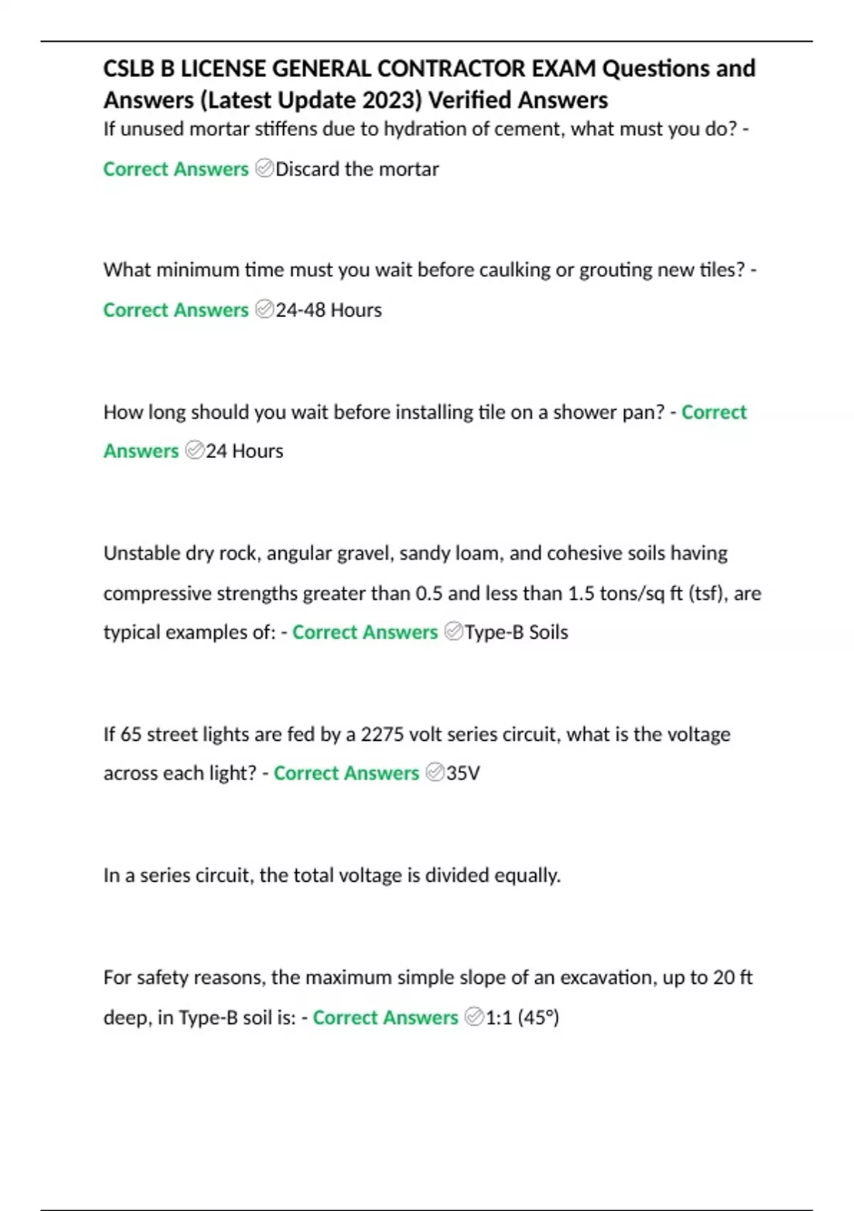 CSLB B LICENSE GENERAL CONTRACTOR EXAM Questions and Answers (Latest Update 2023) Verified Answers 2 Exam (elaborations) CSLB B GENERAL Exam Questions and Answers (latest Update 2023) (170 Questions) 3 Exam (elaborations) CSLB CONTRACTOR S LAW & BUSINESS EXAM Q&As (Latest Update 2023) Verified Answers 4 Exam (elaborations) General Building Contr