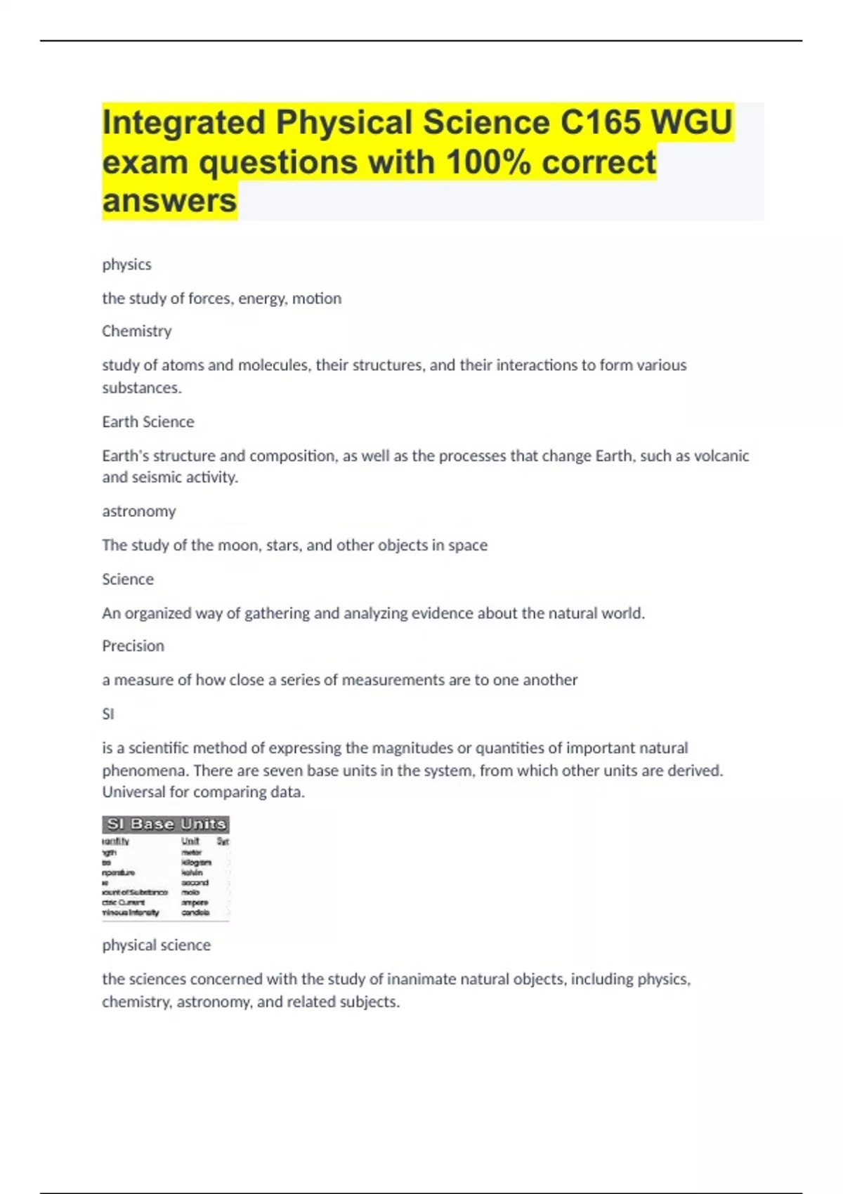 BUNDLE::::::::WGU C165:INTEGRATED PHYSICS SCIENCE|GUARANTEED SUCCESS