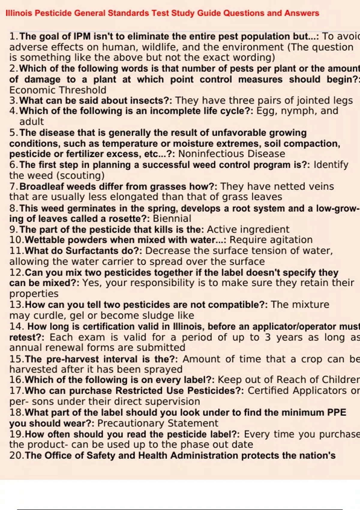 Illinois Pesticide General Standards Test Study Guide Questions and Answers