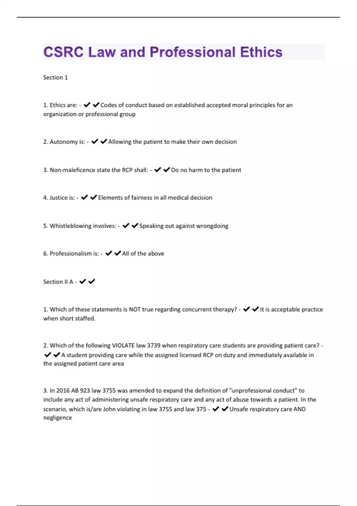 CSRC Law and Professional Ethics | 77 Questions And Answers Already Graded A+