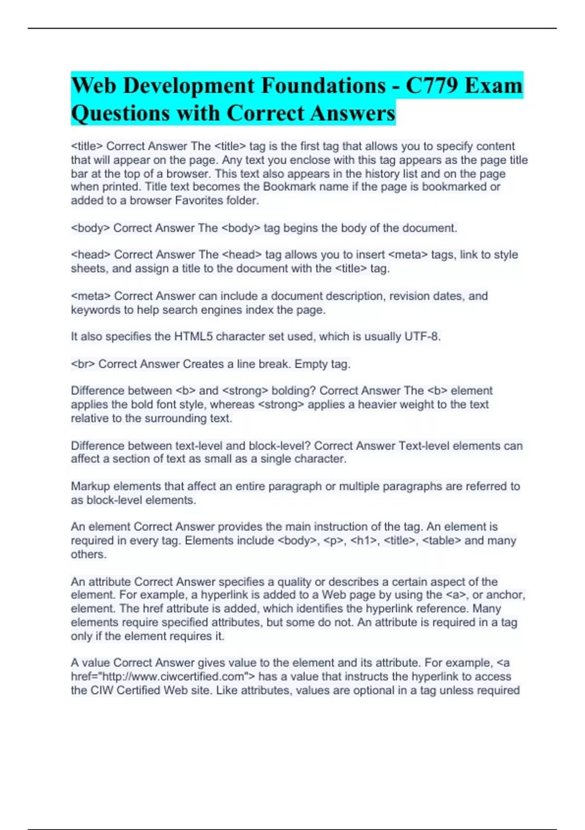 Web Development Foundations C779 Exam Questions with Complete Answers C779: Web Development Foundations Exam Questions with Correct Answers Web Development-Foundations C779 Exam Questions with Correct Answers C779 Web Development Foundations Master Test Questions with Correct Answers WGU C779 Web Development Foundations Questions with Correct Answe