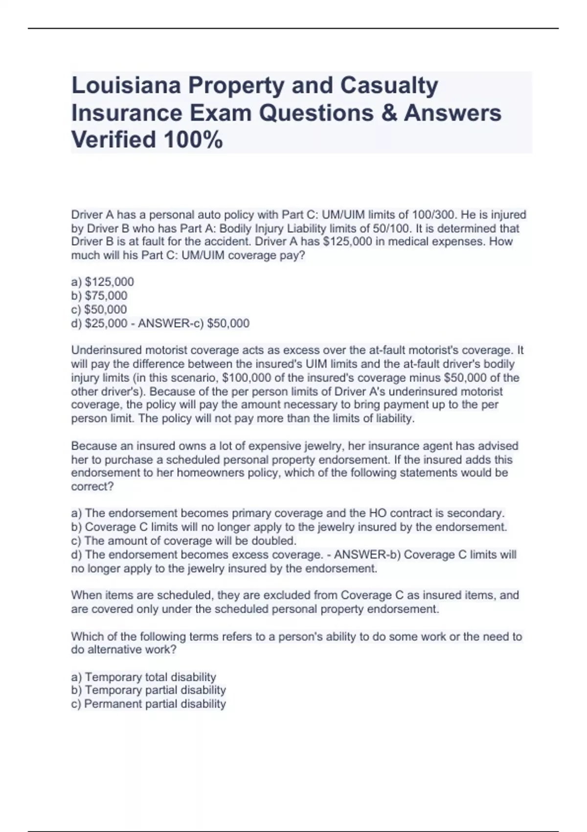 Louisiana property &casualty Exam bundle questions and answers 100% correct