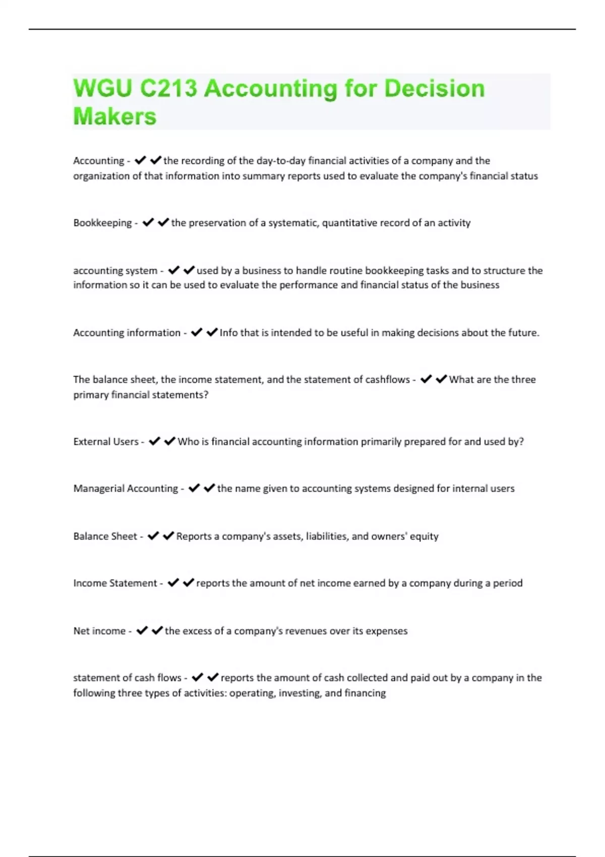 Accounting for decision makers C213 WGU |504 Questions and Answers(A+ Solution guide)
