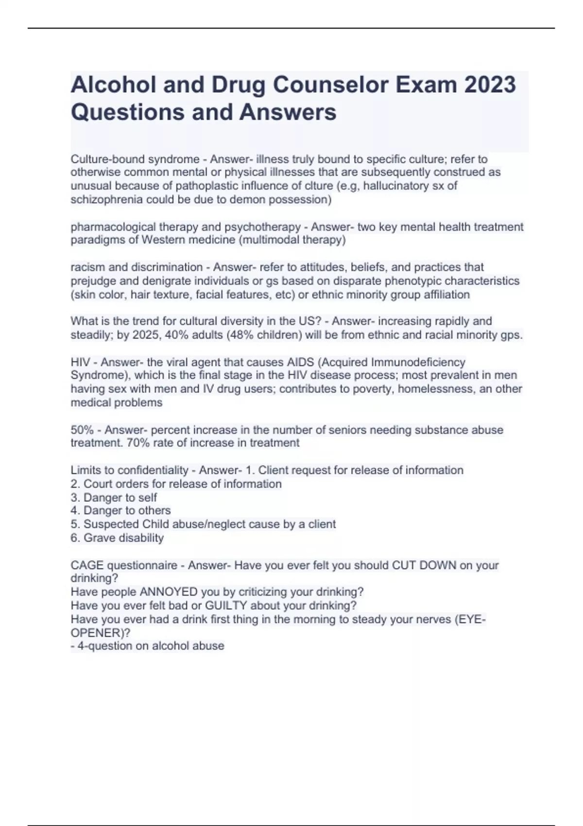 Alcohol and Drug Counselor Exam 2023 Questions and Answers Addiction Counselor Exam Practice II Questions and Answers Graded A Substance Abuse Counseling Final Exam 2023 Questions and Answers Alcohol and Drug Counselor Exam Practice Problems (Daryn s book) Questions and Answers AOD certification Exam 2023 Addiction Counseling Exam 1 Questions