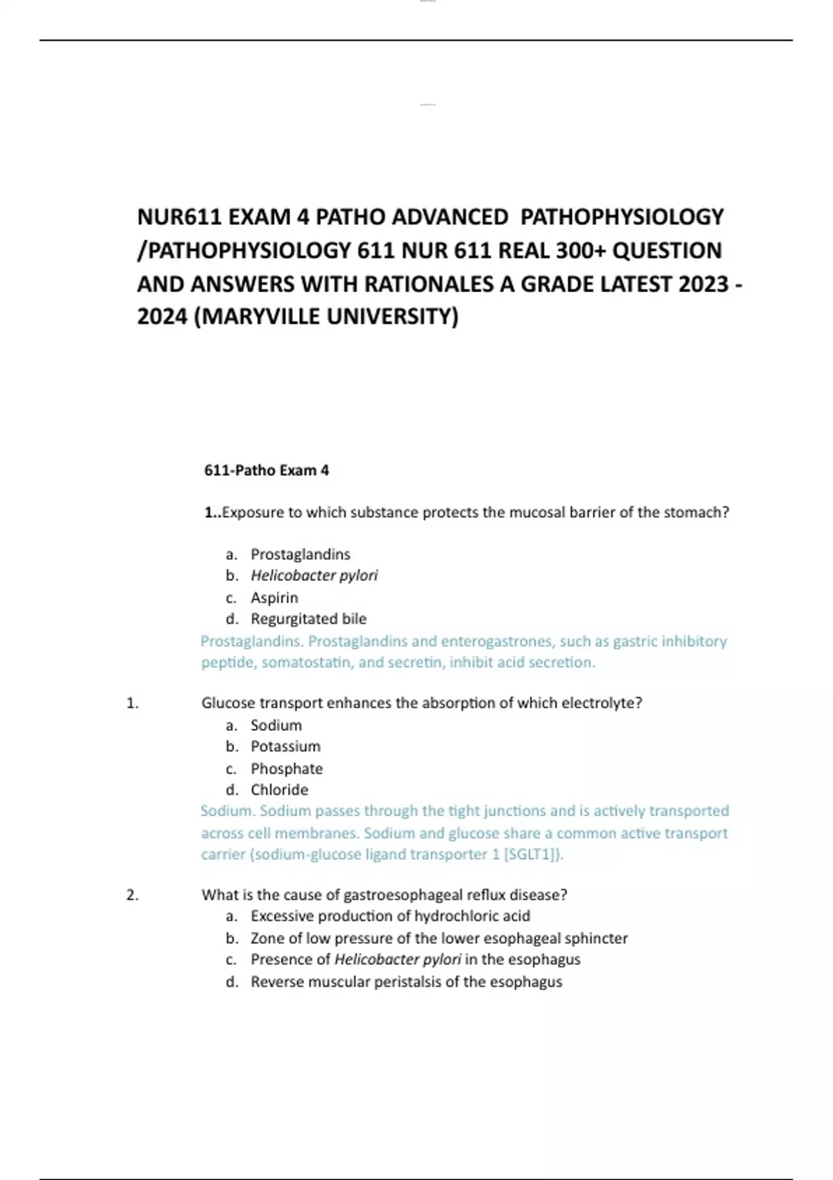 A BUNDLE OF NUR 611 EXAM 1,2,3,4 PATHO ACTUAL QUESTION AND NASWERS