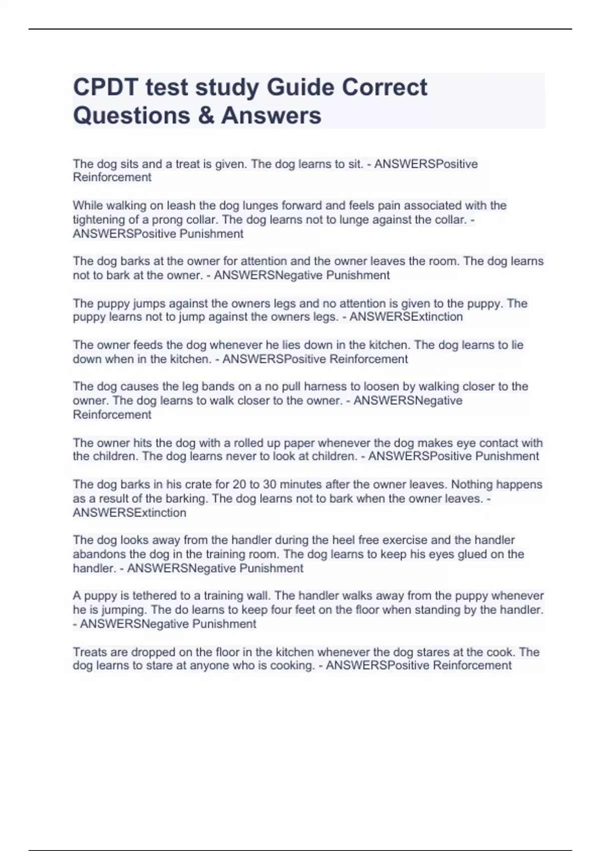 CPDT-KA Study Guide Complete Questions & Solutions (Latest Update )(COMPLETE FULL SOLUTION PACKAGE!!)CPDT-KA Study Guide Complete Questions & Solutions (Latest Update )(COMPLETE FULL SOLUTION PACKAGE!!)CPDT-KA Study Guide Complete Questions & Solutions (Latest Update )(COMPLETE FULL SOLUTION PACKAGE!!)CPDT-KA Study Guide