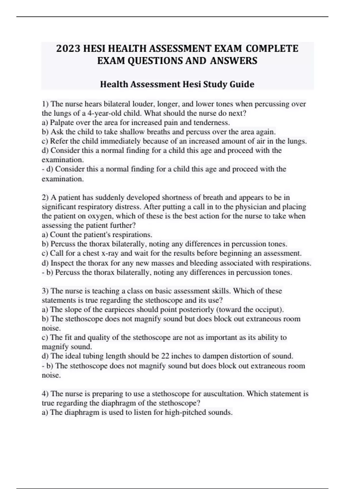 HESI V2 Health Assessment Complete Exam Questions and Correct Answers with Rationales 2023